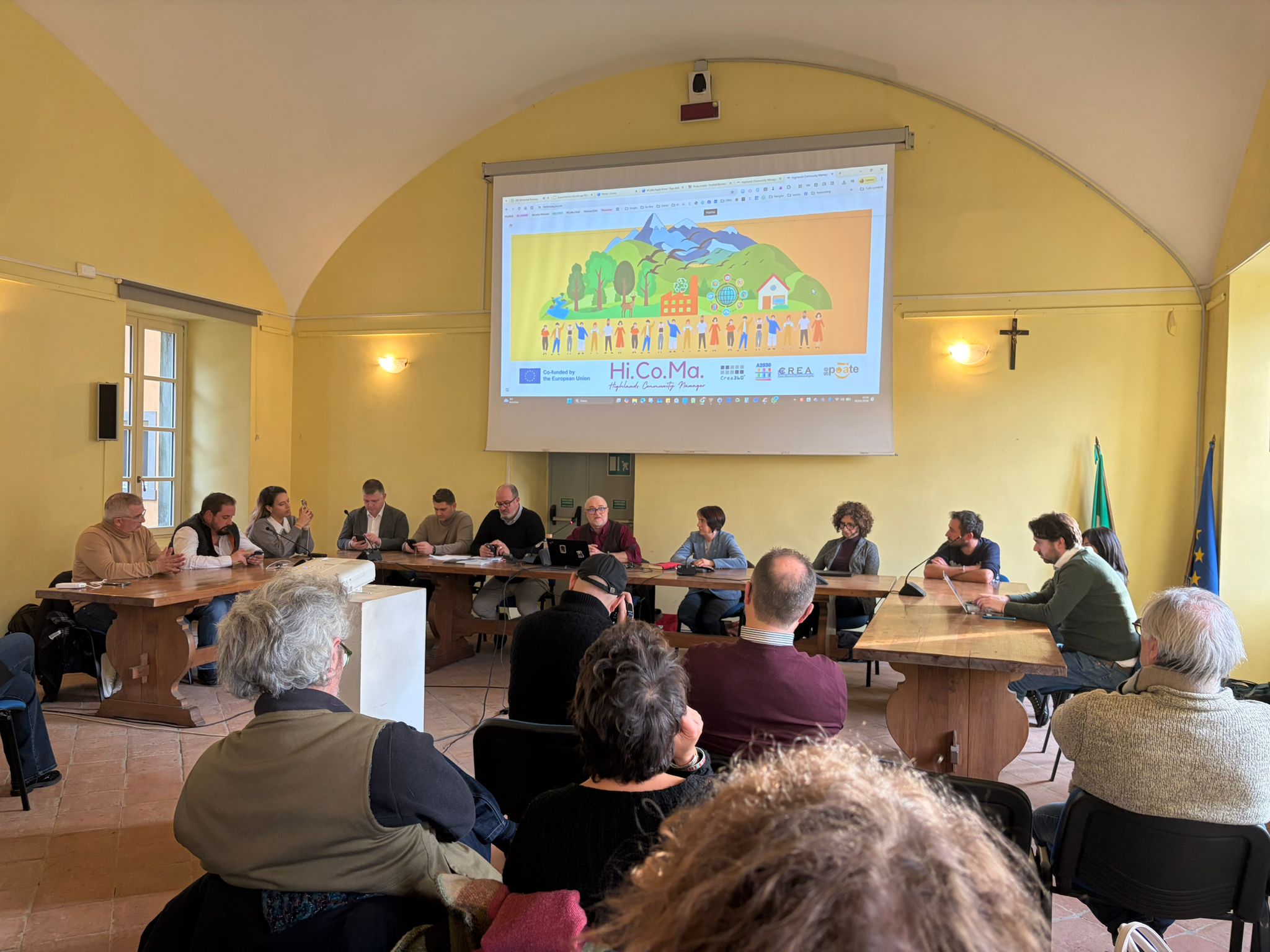 The public HiCoMa conference, held at Stanze del Teatro Rose, brought together citizens, entrepreneurs, public representatives, and territorial development experts. Presentations included: